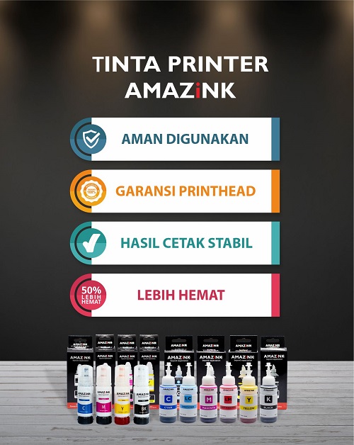 Tinta AMAZiNK dibuat dengan teknologi tinggi yang mampu memberikan hasil cetak yang tajam, melekat kuat di kertas dan memiliki saturasi yang tinggi.